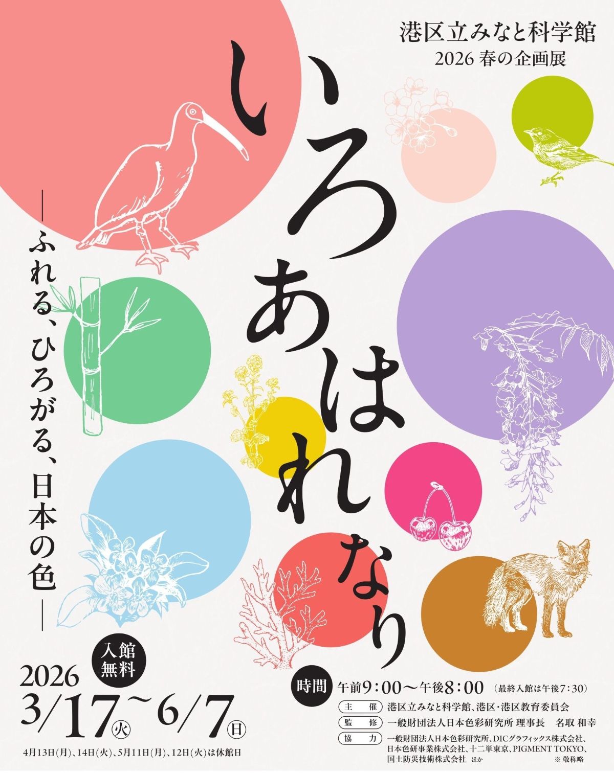 「いろ あはれなり ―ふれる、ひろがる、日本の色―」開催日時:2026年3月17日(火)~6月7日(日) ※4月13日(月)、14日(火)、5月11日(月)、12日(火)は休館日です。