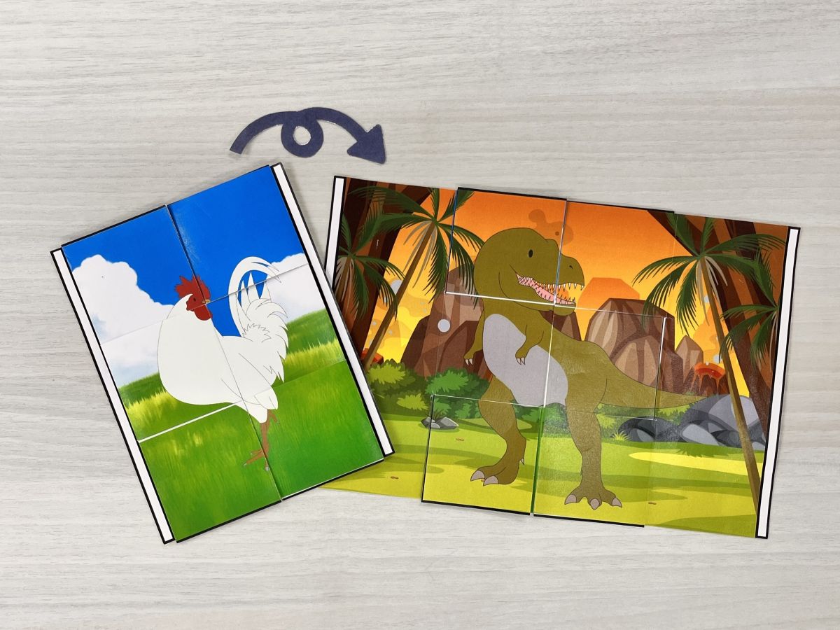 カードのはしを引くと、生きものの姿が大変身!